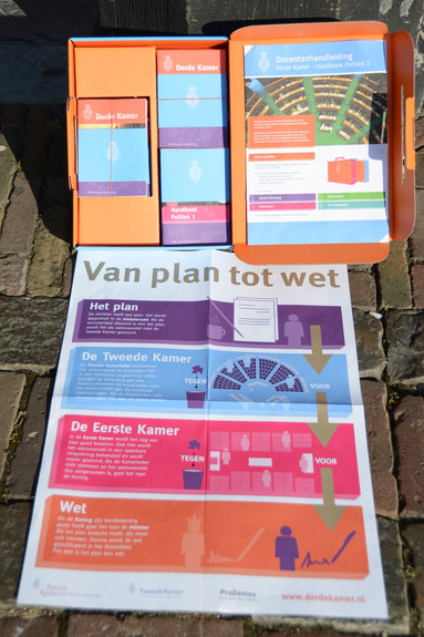 Leren over het werk van de Eerste en Tweede Kamer. Dat kan met het leskoffertje van de Derde Kamer, bedoeld voor leerlingen van groep 7 en 8 van de basisschool. Dinsdag 13 september werd aan Eerste Kamerleden en Tweede Kamerleden een leskoffertje beschikbaar gesteld.