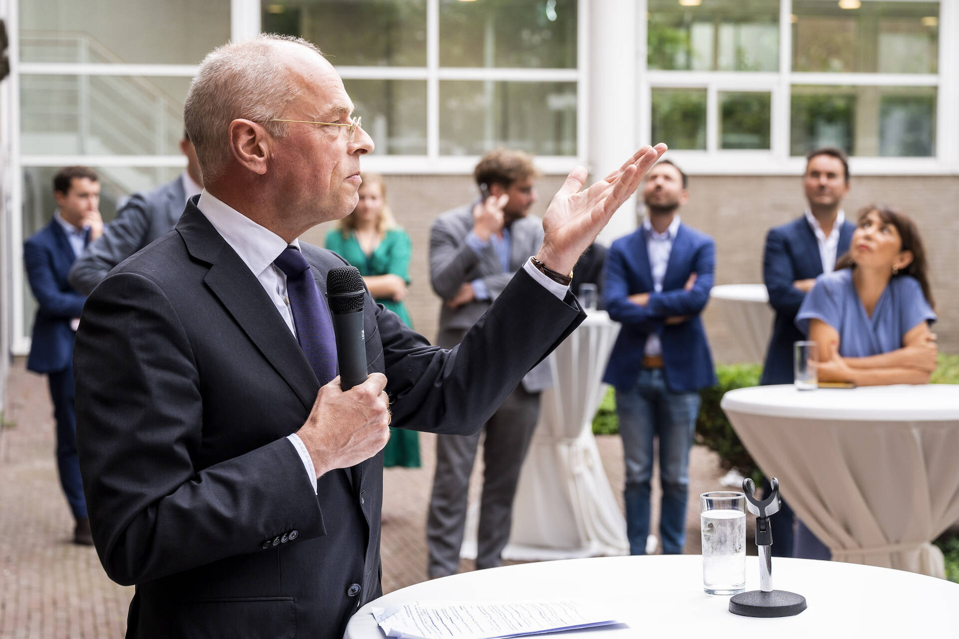 In een toespraak voor de bij de receptie aanwezige Kamerleden en externe genodigden markeerde Voorzitter Bruijn enkele bijzondere punten van het parlementaire jaar tot op heden. De Eerste Kamer heeft tot nu toe in dit parlementaire jaar 283 wetsvoorstellen in behandeling genomen. Uniek was dat de Kamer dit deed in verschillende plenaire vergaderzalen. Begonnen in de Ridderzaal vanwege de coronamaatregelen, verhuisde de plenaire vergadering later naar de tijdelijke huisvesting aan de Kazernestraat/Lange Voorhout waar de Kamerorganisatie eerder al ingetrokken was. Wegens de renovatie van het Binnenhof is in dit parlementaire jaar vervolgens de gehele Kamer verhuisd naar de nieuwe locatie.