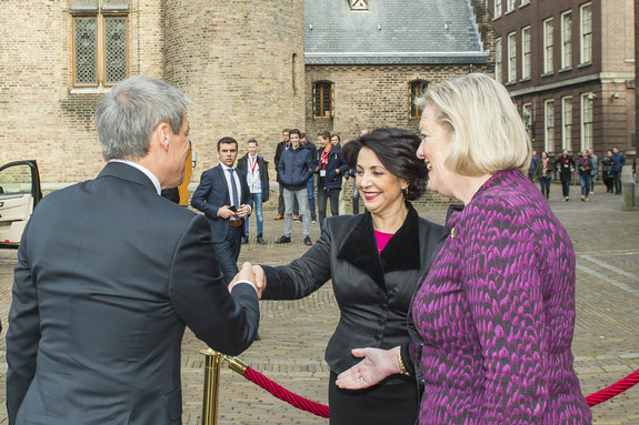 De Roemeense premier Dacian Ciolos is woensdag 9 maart 2016 ontvangen door de Staten-Generaal. Hij sprak in de Stadhouderskamer van de Tweede Kamer met de Voorzitter van de Tweede Kamer, Khadija Arib, en de voorzitter van de Eerste Kamer, Ankie Broekers-Knol. Dat gesprek ging onder meer over migratie en de vluchtelingencrisis.