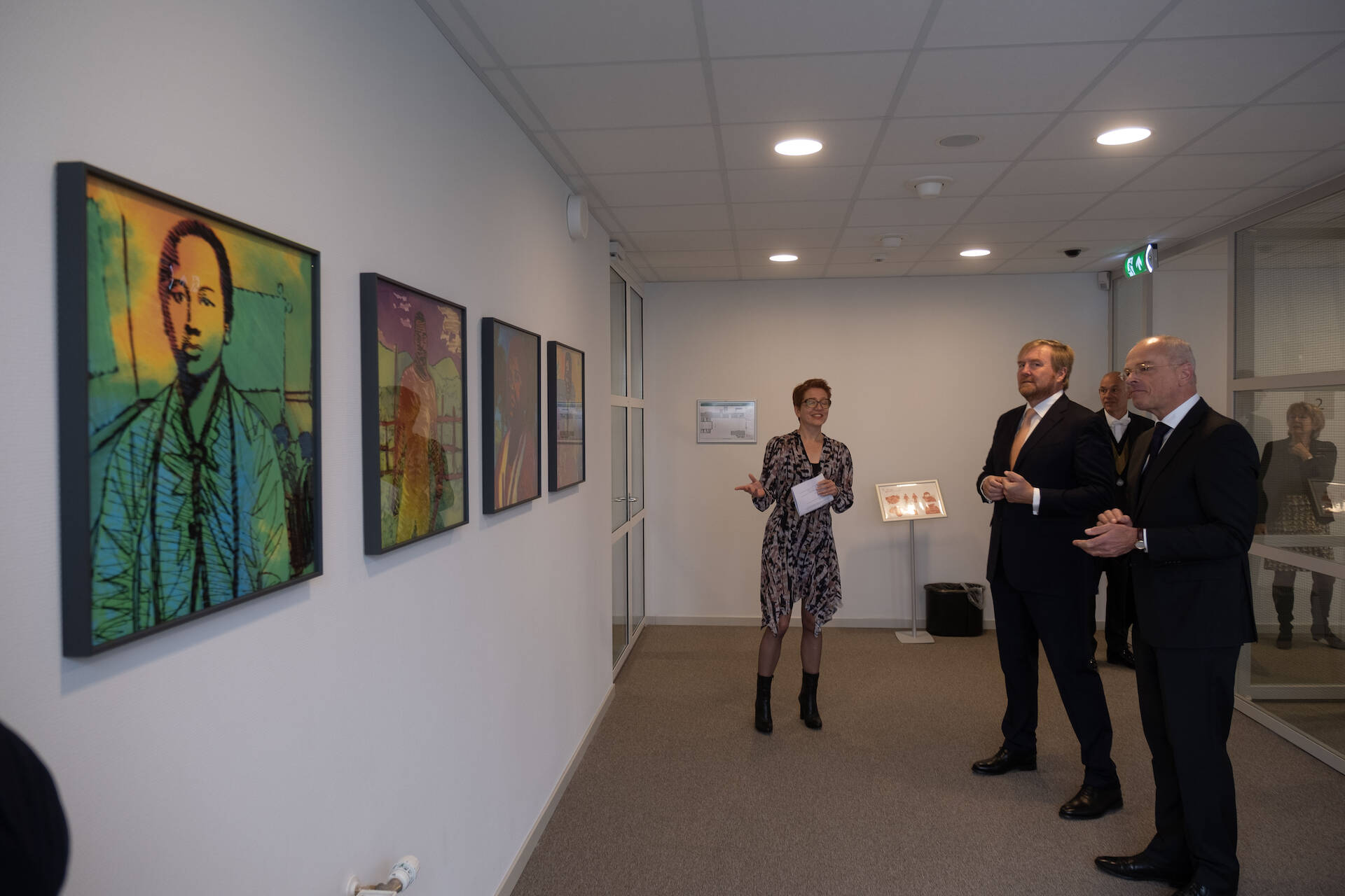 De Voorzitter van de Eerste Kamer, Jan Anthonie Bruijn, vertelde de Koning over de verhuizing en over het doorgaan van het parlementaire werk op een andere plek. Tijdens een rondleiding sprak de Koning met de restauratiearchitect, de kunstcoördinator en de projectleider huisvesting. Er is gesproken over de historie van het pand, de uitgangspunten en uitdagingen van de tijdelijke huisvesting, over kunst in de plenaire zaal en in andere ruimten en over de faciliteiten voor bijvoorbeeld livestreams van de vergaderingen.